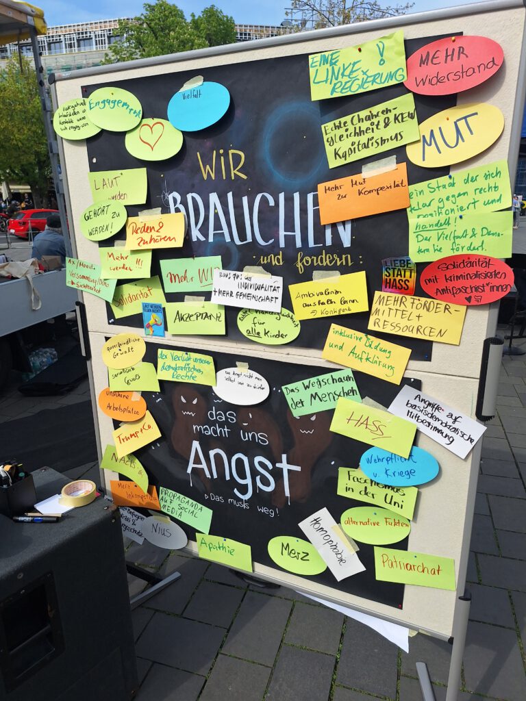 Die Veranstaltung verlief friedlich, begleitet von Musik, Transparenten und Informationsständen. Ziel der Organisierenden war es, ein öffentlich sichtbares Zeichen für demokratische Werte und gegen rechtsextreme Tendenzen zu setzen.