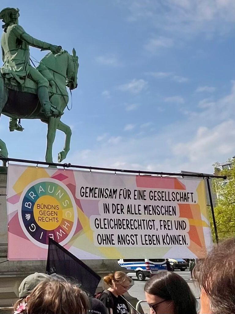 In Braunschweig versammelten sich Aktivistinnen und Aktivisten zu einer Demo gegen Reichsbürger. Mit klarer Haltung für Demokratie, Solidarität und antifaschistische Werte setzten sie ein sichtbares Zeichen gegen rechte Strukturen.