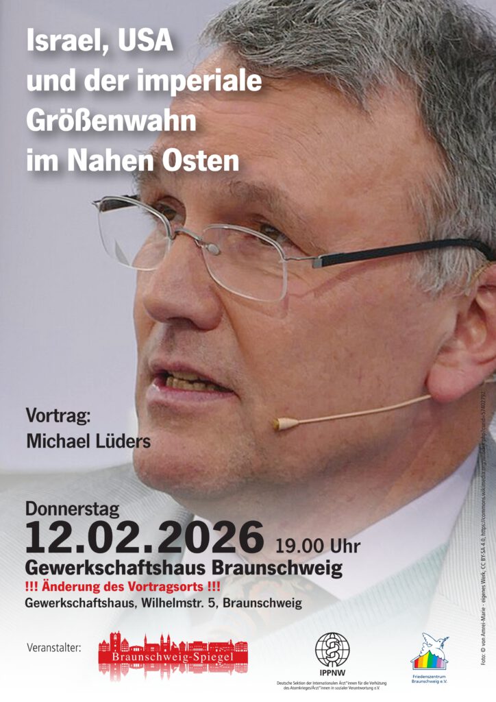 Welche „betroffene Gruppen und Teilnehmende“ werden durch eine Veranstaltung mit Dr. Michael Lüders zum Thema „Israel, USA und der imperiale Größenwahn im Nahen Osten“ so gefährdet, dass sich der Antisemitismusbeauftragte und der Staatsschutz in „unzähligen Gesprächen“ für eine Absage der Veranstaltung in der ev. Akademie in Braunschweig einsetzten?